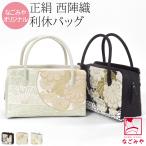 和装バッグ フォーマル 通年用 日本製 なごみや 正絹 利休バッグ 西陣織 帯地 丸取りに花 着物 バック 結婚式 お茶会 留袖 訪問着 色無地 手提げ レディース