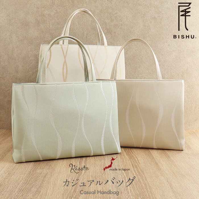 バッグ お洒落バッグ 尾州織 和装バッグ 横長 トートバッグ 手提げバッグ 着物 和装 洋装 和洋兼用 レディース 単品 カジュアル用 春 夏 秋 冬 通年用 アイボリー ベージュ グリーン 全3色 ジャガード織 立涌 軽い 日本製 普段 カジュアル バッグ オシャレ 贈り物 ギフト