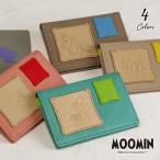 MOOMIN ムーミン パスケース 本革 窓付き 定期入れ レディース 革 ムーミン グッズ スナフキン リトル ミイ ニョロニョロ 二つ折り PATCHWORK パッチワーク