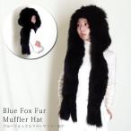 ファー マフラー 帽子 2way ブラック ブルー フォックス ふわふわ ボリューム オシャレ リアルファー フォックスファー 冬 ロング 男女兼用 レディース メンズ