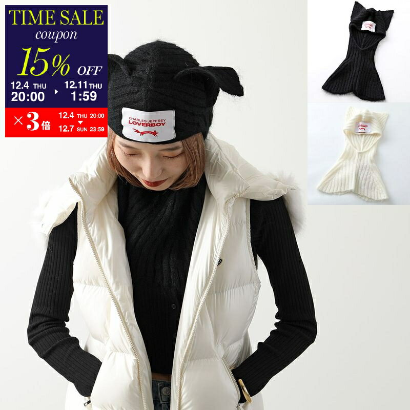 【15%OFFクーポン対象・12/4-20時~】CHARLES JEFFREY LOVERBOY バラクラバ KNITTED EARS BALACLAVA 31130501 31130503 レディース ニット ネコ耳 ニット帽 ロゴ ニットキャップ 帽子 カラー2色【cp_fifte】