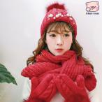 ニット帽子 マフラー 手袋 3点セット レディース 帽子 防寒 保温 シンプル 無地 リボン 可愛い 秋冬 おしゃれ カジュアル プレセント 全3色 フリーサイズ