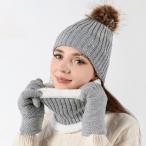 秋冬レディース帽子 マフラー 手袋 3点セット 耳保護 ニット帽 ベルベット 可愛い 小顔効果 ポンポン付き 暖かい帽子 風帽子 寒さ抵抗 毛糸帽子 スキー