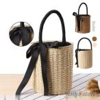 かごバッグ バケツ型 リボン付き ストローバッグ 手提げ バスケット ハンドバッグ 鞄 トートバッグ 夏 ペーパーストローバッグ 巾着 ブラウン ベージュ