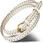 ベルト レディース 本革 細ベルト ゴルフ スーツ長さ調整可能 柔らかい 軽量(ホワイトメッシュ, Free Size)