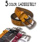 本革 レザー レディース ベルト 花柄 クラフト 細ベルト 5カラー カジュアル カジュアル ベルト 牛革