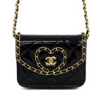 【中古】シャネル マトラッセ パテントレザー ハート チェーンショルダーバッグ ブラック エナメル ミニ 財布 ウォレット かわいい レディース 6063027jm-C4