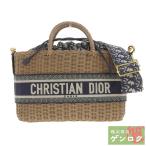 【中古】Dior ディオール ショルダーバッグ 2WAYかごバッグ 2WAYバッグ ハンドバッグ ブラウン ネイビー ラタン キャンバス 斜め掛け レディース【質屋】【代引き手数料無料】