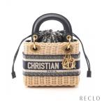 Christian Dior クリスチャンディオール LADY DIOR ミディアム ウィッカー かごバッグ ネイビー/ブラウン