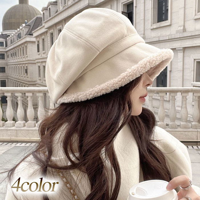 帽子 レディース キャスケット 目深 可愛い おしゃれ ボア素材 あったかい 秋冬 変装グッズ すっぴん隠し 送料無料 メール便