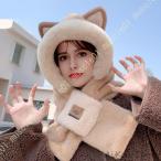 帽子 マフラー 一体型 レディース 冬 暖かい 鹿の角 耳当て モコモコ マフラー フード付き ふわふわ 小顔効果 可愛い セット 可愛い 防寒 柔らかい キャップ