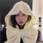 ニット フードウォーマー ネックウォーマー レディース 秋 冬 大きめ 防寒 防風 帽子 マフラー リボン オシャレ 大人可愛い 自転車 暖かい シンプル 小顔 冬 防