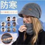 【冬最強の暖か2セット】 ネックウォーマー レディース ニット帽子 つば付きニット帽 極厚雲感裏パイル 3WAY