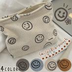 大人カワイイ【即納】【メール便送料無料】スマイル コーデュロイ ポーチ レディース 総柄 リブ キャンバス ナチュラル クラッチバッグ 大きめ 大容量 おしゃれ