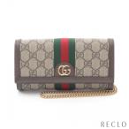グッチ GUCCI オフィディア GGスプリーム チェーンウォレット PVC レザー ベージュ グレーブラウン 77230996IWG8745 レディース 中古