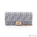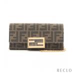 フェンディ FENDI ズッカ チェーンウォレット キャンバス レザー ダークブラウン 8M0365 レディース 中古