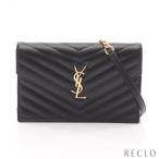 サンローランパリ SAINT LAURENT PARIS モノグラム エンベローブ チェーンウォレット レザー ブラック 393953 レディース 中古