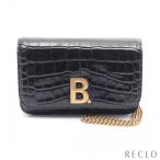 バレンシアガ BALENCIAGA B. ビードット チェーンウォレット エナメルレザー ブラック クロコ型押し 593615 レディース 中古