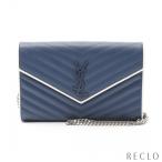サンローランパリ SAINT LAURENT PARIS カサンドラ クラシック チェーンウォレット レザー ダークブルー ホワイト 377828 レディース 中古