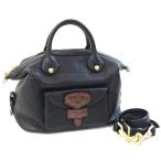 ロエベ 2WAYハンドバッグ メイ 331.41.D85 ブラック ブラウン レザー オーストリッチ 中古 ショルダーバッグ