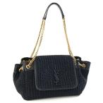 サンローラン ハンドバッグ ノリータ 607465 ブラック ラフィア レザー 中古 チェーンショルダー ロゴ 肩掛け