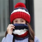 ニット帽 レディース 3色ボーダー ネックウォーマーのおまけ付き ケーブル編み スヌード 暖かい 帽子 レディース 冬 レディースニット帽 マフラー スキー ニットキャップ 秋冬 裏ボア 裏起毛 男女兼用 ユニセックス 防寒