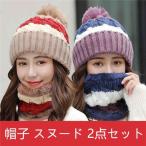 マフラー 帽子 レディース ニット帽 ニットキャップ スヌード 2点セット 裏起毛 無地 編み目 おしゃれ 秋冬 小顔 あったか カラー豊富