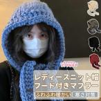 フードマフラー ニット フード 秋 暖かい ニットマフラー 肩掛け マフラー フード付き ストール マフラー ニット帽子 レディース 黒 帽子 ニット