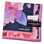 レオナール 大判 ハンカチ レディース 1枚 ブランド LEONARD シルク混 ネイビー ピンク オレンジ フラワー ライン