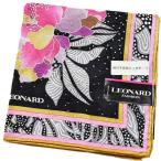 レオナール 大判 ハンカチ レディース 1枚 ブランド LEONARD シルク混 フラワー プリント 黒 ブラック ピンク 女性 婦人