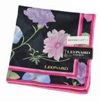 レオナール 大判 ハンカチ レディース 1枚 ブランド LEONARD シルク混 フラワープリント 黒 ブラック 女性 婦人