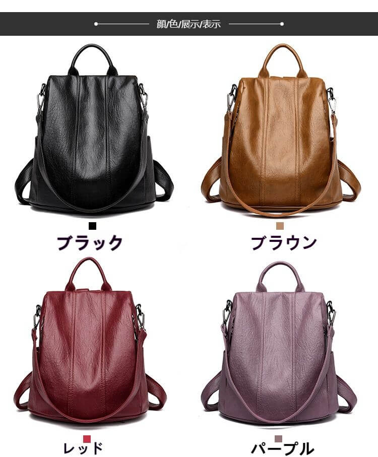 4色 パープル レッド ブラック ブラウン バックパック レディースバックパック大容量 レディース革レザー レディースリュックおしゃれリュック