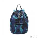 プラダ PRADA TESSUTO CAMOUFL バックパック リュックサック カモフラージュ ナイロン レザー ブルー ネイビー ブラック BZ0032 レディース 中古
