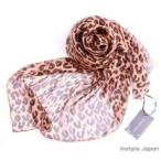 スカーフ レディース ストール シルク100% ヒョウ柄 茶 B 茶 レオパード アニマル 豹柄 大判 マフラー シフォン Bサイズ:195×65cm インスタイルジャパン