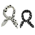 Allegra K 2個入り 50cm スカーフ 正方形 シルク風 水玉模様 スクエアスカーフ ネッカチーフ 髪飾りホワイト&ブラック 50x50cm