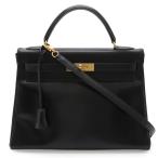 HERMES エルメス ケリー32 ハンドバッグ 2WAY ショルダーバッグ ヴィンテージ 内縫い ボックスカーフ レザー ブラック 黒 ゴールド金具