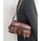 ショルダーバッグ バッグ レザー調 ベルト付き 多ポケット フラップ バッグ レディース