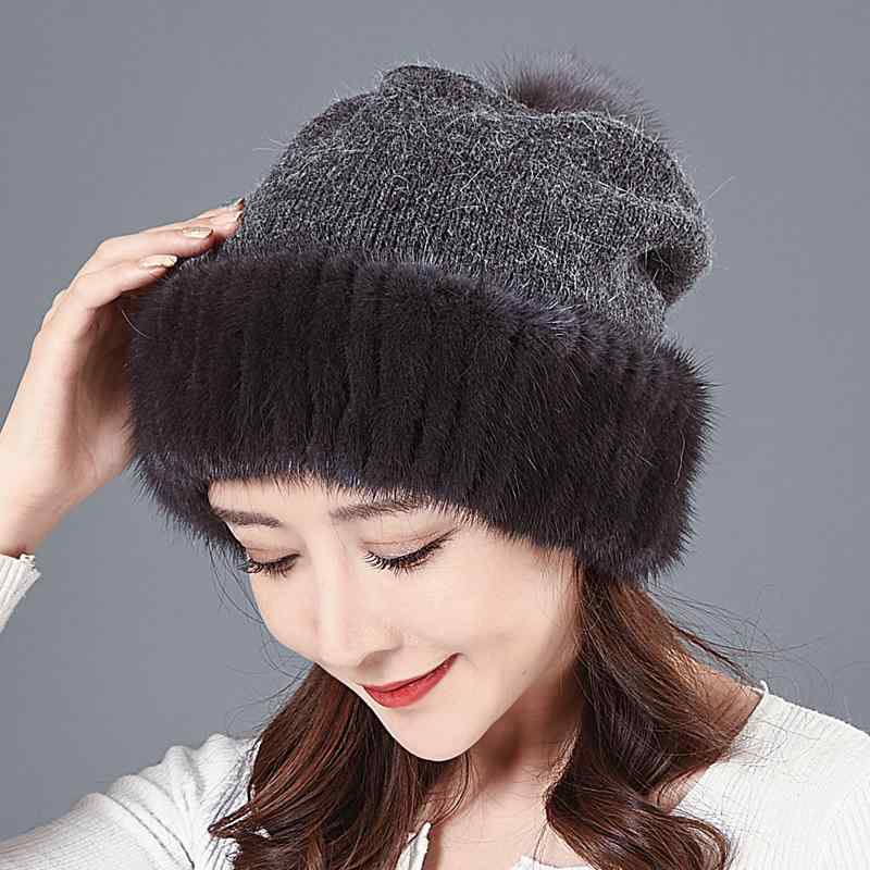帽子 レディース ベレー帽 ミンク ラビットファー 混紡 ニット フォックスポンポン あったか 防寒 耳当て 防風 上質 秋冬 普段使い かわいい ハット