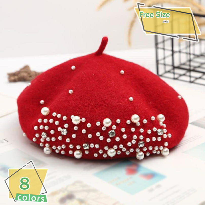 1000円OFFクーポン 帽子 レディース 秋冬 ベレー帽 ウール パール キラキラビジュー フェルトベレー ウール 女の子 ガーリー 可愛い 暖かい ギフト お洒落 プレゼント ベレー レディース ベレー帽 帽子 無地 ウール 毛 暖 フェルト カラフル レディースベレー帽 RaogtCYU
