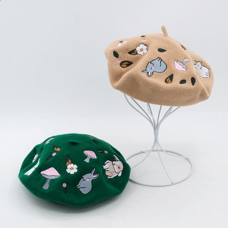 ベレー帽 レディース 秋冬 ウール 刺繡 森ガール 帽子 画家帽 丸型 暖かい かわいい おしゃれ カジュアル 緑 白 ベージュ2