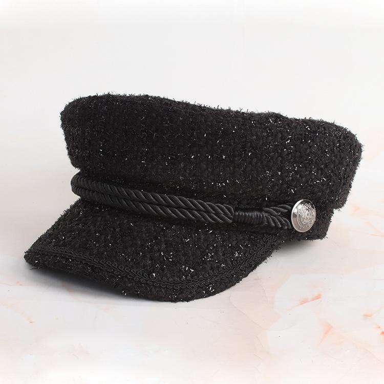 帽子 レディース 秋冬 光沢感のある ポリエステル フラットトップハット レトロ ベレー帽 韓国風 キャスケット マリンキャップ サイズ調節可能 ブラック(x200)