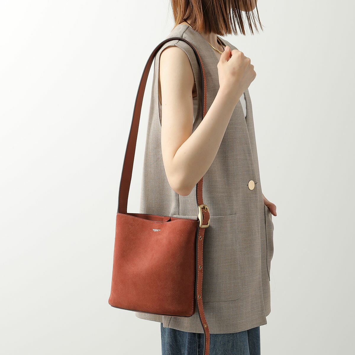 COACH コーチ ショルダーバッグ ブリーカー バケットバッグ 21 CCW84 レディース ポーチ付き クロスボディ スウェード 鞄 B4/AY/CLAY