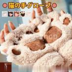 レディース 手袋 キッズ ジュニア 指なし 猫 ネコ 肉球 スマートフォン対応 スマホ対応 もしろ
