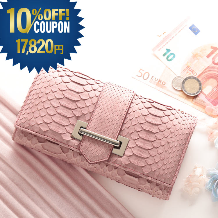 パイソン 財布 がま口 本革がま口 長財布 レディース財布 パイソン革 蛇革 ヘビ革 カード収納 ポケット収納 仕切り収納 レザー 長札 日本製 口金 ガマ口財布 サイフ 柄 ウェーブ イエロー