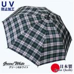 【ふるさと納税】レディース雨傘 長傘 先染チェック ジャンプ傘 日本製 グリーンXホワイト 172201_1 / まちづくり観光振興機構 モダン 高級感 奈良県 田原本町