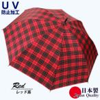 【ふるさと納税】レディース雨傘 長傘 先染チェック ジャンプ傘 日本製 レッド系 172201_2 / まちづくり観光振興機構 モダン 高級感 奈良県 田原本町
