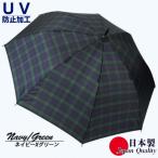 ふるさと納税 田原本町 レディース雨傘 長傘 先染チェック ジャンプ傘 日本製 ネイビーXグリーン 172201