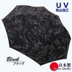 【ふるさと納税】レディース雨傘 長傘 173603 デシン花柄モノトーンプリント 手開き 日本製 ブラック / まちづくり観光振興機構 UV防止加工 紫外線対策 全天候型 奈良県 田原本町