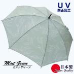【ふるさと納税】レディース雨傘 長傘 173603 デシン花柄モノトーンプリント 手開き 日本製 ミントグリーン / まちづくり観光振興機構 UV防止加工 紫外線対策 全天候型 奈良県 田原本町