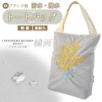 防水 撥水 トートバッグ A4 軽量 刺繍 グレー ミモザ 傘ポケット マチ付 チャック付 ポリエステル 丈夫 シノワズリーモダン京都 繍画